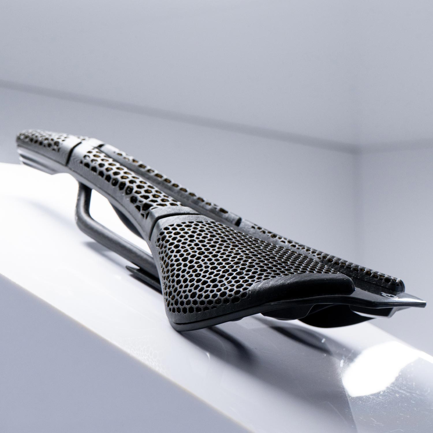 A 3D saddle that guarantees comfort and high performance. This lightweight saddle, thanks to the latest-generation 3D printing, provides maximum comfort to every kind of cyclist when they want to express all their power on the pedals for long periods of time and in any condition, whether on the road or on gravel.